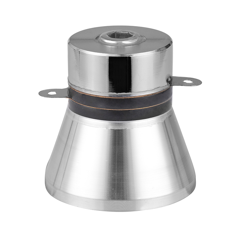 超声波换能器(振子)是由压电陶瓷的压电效应实现电能转换为机械能(超声波振动),并通过声阻抗匹配的前后辐射盖块进行放大的器件。超声波清洗是通过超声波换能器(振子)产生的超声波振动,在水中发生空化效应对清洗件上的污物产生的机械起剥落作用, 同时能促进清洗液与污物发生化学反应, 达到清洗物件的目的。